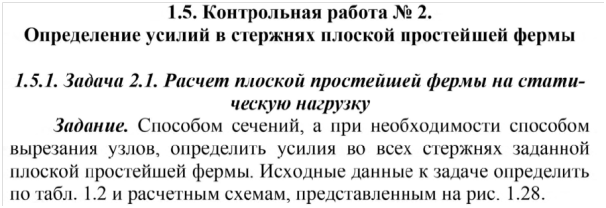 Для студентов по предмету Строительная механикаОпределение усилий в стержнях плоской простейшей фермыОпределение усилий в стержнях плоской простейшей фермы