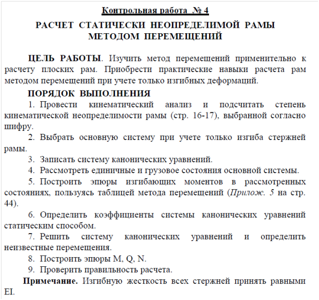 Задача 4: РАСЧЕТ СТАТИЧЕСКИ НЕОПРЕДЕЛИМОЙ РАМЫ МЕТОДОМ ПЕРЕМЕЩЕНИЙ