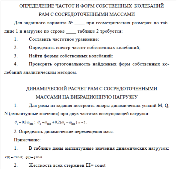 Определение частот и форм собственных колебаний рам с сосредоточенными массами. Динамический расчет рам с сосредоточенными массами на вибрационную нагрузку