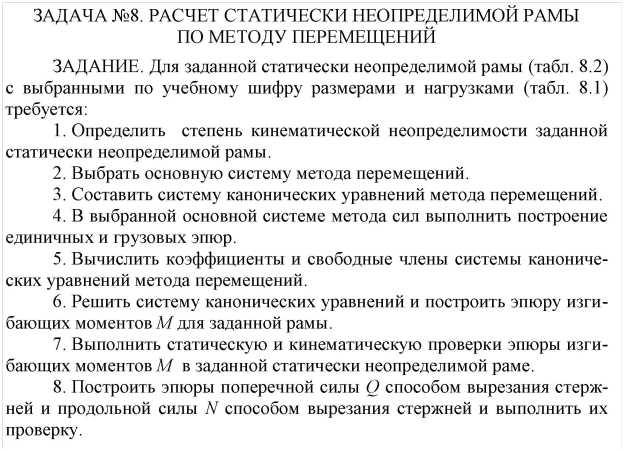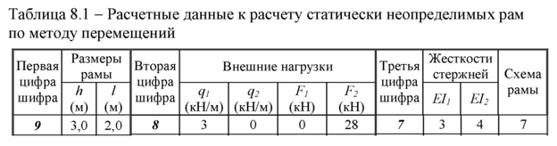 Задача 8: Расчет статически неопределимой рамы по методу перемещений. вариант 987