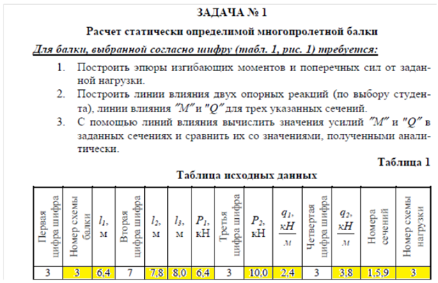 Задача 1: Расчет статически определимой многопролетной балки вариант 3733