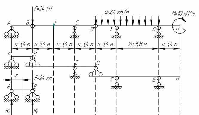 Для студентов по предмету Строительная механикаРасчет многопролетной статически определимой балки.Расчет многопролетной статически определимой балки.