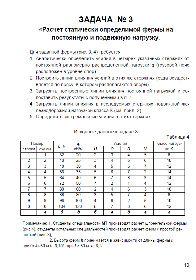 Задача ЗД3: Расчет статически определимой фермы на постоянную и подвижную нагрузки. вариант 444