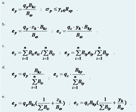 Как определить изгибающие моменты i-м столбе от смещения ядра и от его кручения?