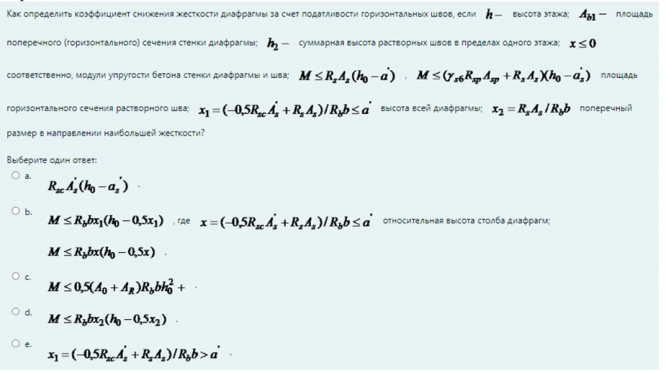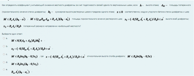 Как определить коэффициент учитывающий снижения жесткости диафрагмы за счет податливости связей сдвига по вертикальным швам, если h – высота этажа; Ab1 – площадь поперечного (горизонтального) сечения стенки диафрагмы; h₂ – суммарная высота растворных швов в пределах одного этажа; x ≤ 0 соответственно, модули упругости бетона стенки диафрагмы и шва; M ≤ RsAs(h0 – a`) , M ≤ (γs6RspAsp + RsAs)(h0 – a`s) площадь горизонтального сечения растворного шва; x1 = (–0,5RscA`s + RsAs)/Rbb ≤ a` высота всей диафрагмы; x2 = RsAs/Rbb поперечный размер в направлении наибольшей жесткости?