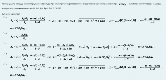 Как определить площадь сечения продольной арматуры при симметричном армировании во внецентренно сжатом ЖБ элементе при ξ > ξR, если бетон принят классом не выше В30, армирование - стержнями класса А-I, A-II, A-III, Bp-I?