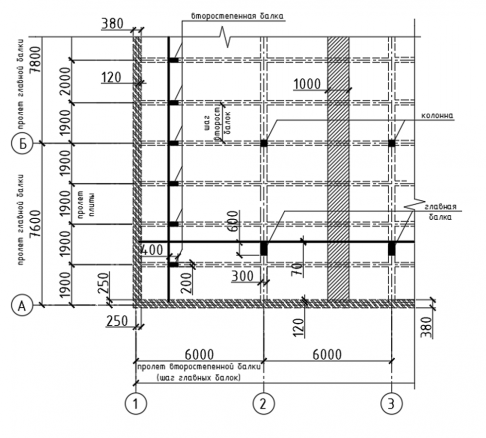 - Шаг второстепенных балок принимаем равным 1900, 2000 мм.