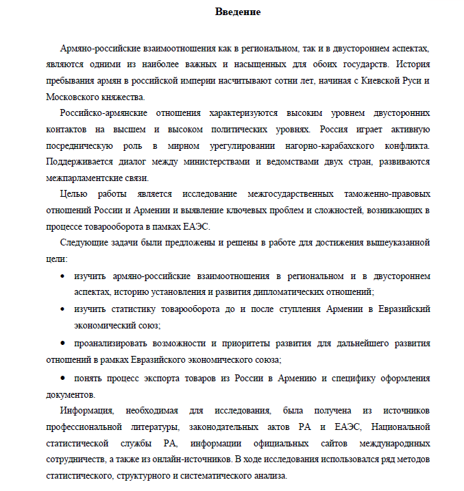 Реферат: Исследование межгосударственных таможенно-правовых отношений России и Армении