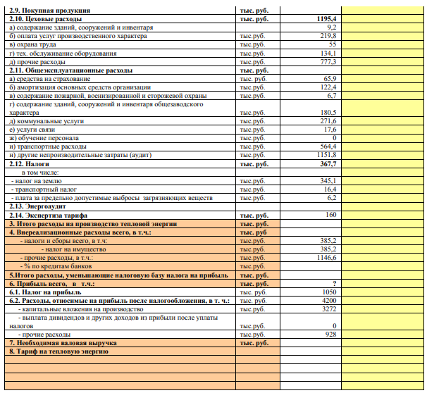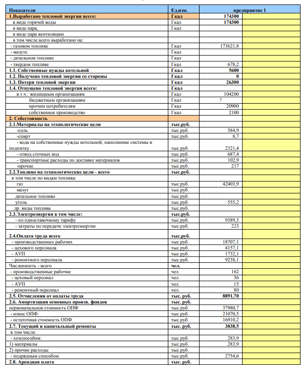 Расчетное задание Дана следующая информация по издержкам предприятия. Срок службы оборудования 10 лет. Линейный способ начисления амортизации. Заполните таблицу себестоимости. Рассчитайте одноставочный и двуставочный тариф на тепловую энергию.