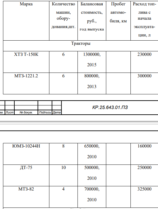 Главная » Учебные материалы » Техническая эксплуатация машинно-тракторного парка (МТП) » Курсовые работы » КостГСХА » Несколько классов/семестров » Организация технического обслуживания машинно-тракторного парка сельскохозяйственного предприятия оао племзаводкараваево
