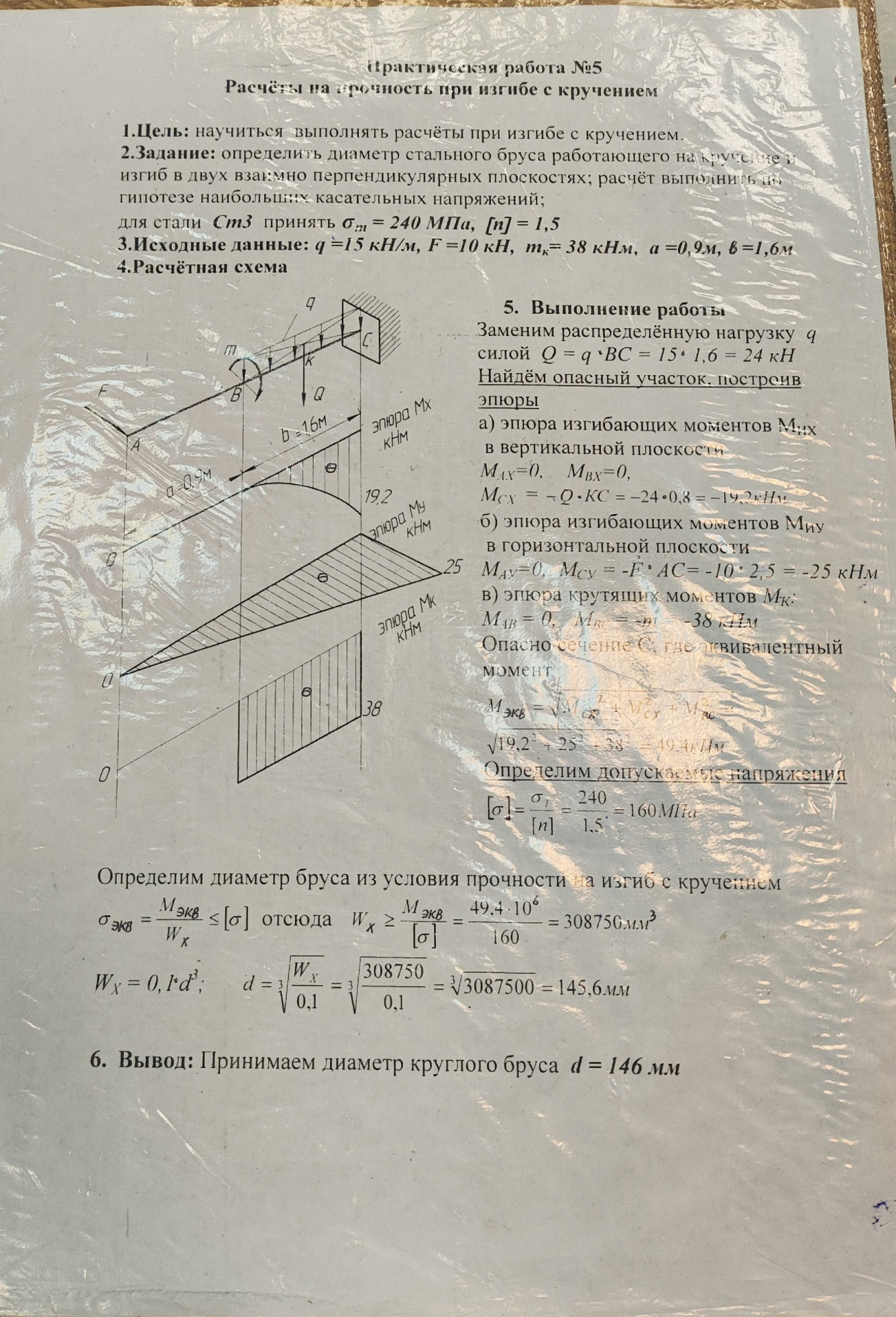 Для студентов РГУПС по предмету Техническая механикаПрактическая работа 5. Расчёты на прочность при изгибе с кручением.Практическая работа 5. Расчёты на прочность при изгибе с кручением.
