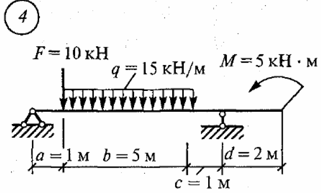 Практическая работа № 2. Определение реакций балки на двух опорах при вертикальных нагрузках. Вариант 4