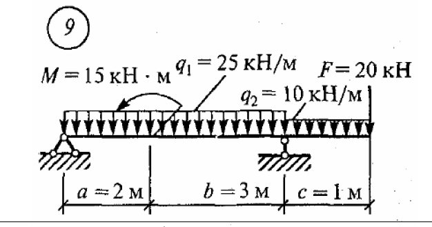 Задача ПР2: Практическая работа № 2. Определение реакций балки на двух опорах при вертикальных нагрузках вариант 9