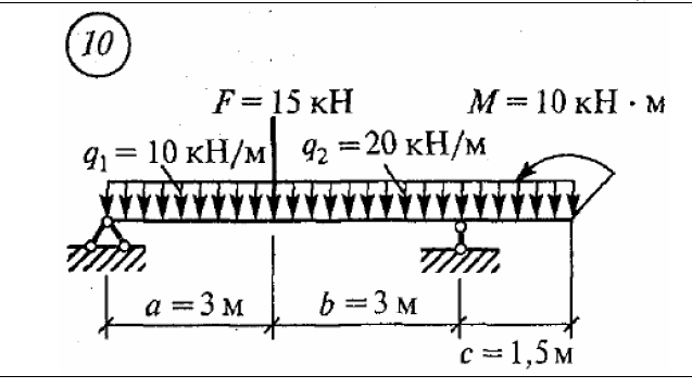 Задача ПР2: Практическая работа № 2. Определение реакций балки на двух опорах при вертикальных нагрузках вариант 10