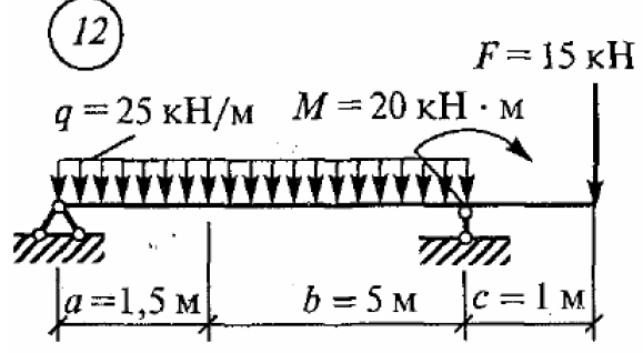 Задача ПР2: Практическая работа № 2. Определение реакций балки на двух опорах при вертикальных нагрузках вариант 12