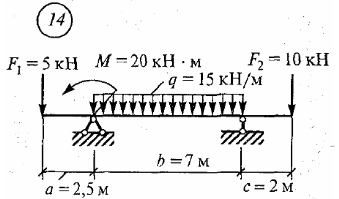 Задача ПР2: Практическая работа № 2. Определение реакций балки на двух опорах при вертикальных нагрузках вариант 14