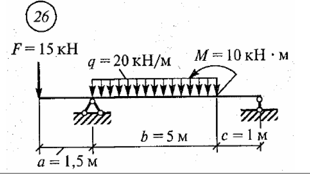 Задача ПР2: Практическая работа № 2. Определение реакций балки на двух опорах при вертикальных нагрузках вариант 26