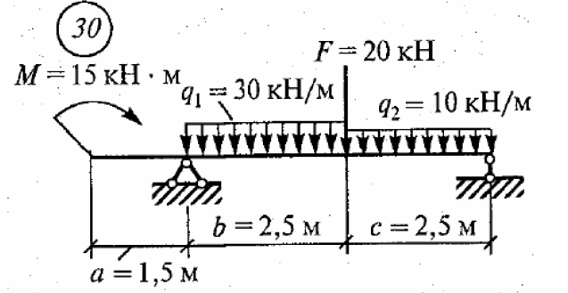 Задача ПР2: Практическая работа № 2. Определение реакций балки на двух опорах при вертикальных нагрузках вариант 30