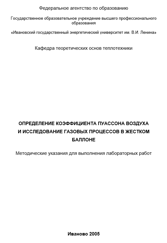 Главная » Учебные материалы » Техническая термодинамика » Книги » ИГЭУ им. Ленина » Несколько классов/семестров » Чухин И.М. - Определение коэффициента Пуассона воздуха и исследование газовых процессов в жестком баллоне