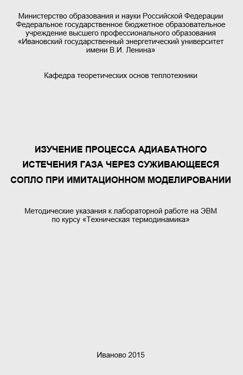 Главная » Учебные материалы » Техническая термодинамика » Книги » ИГЭУ им. Ленина » Несколько классов/семестров » Чухин И.М. - Изучение процесса адиабатного истечения газа через суживающееся сопло при имитационном моделировании