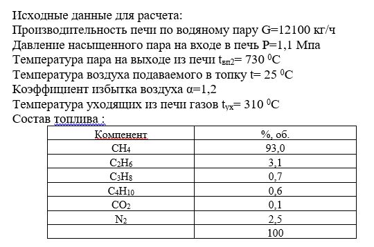 Для студентов СамГТУ по предмету Техническая термодинамикаРасчет печи производства перегретого водяного параРасчет печи производства перегретого водяного пара
