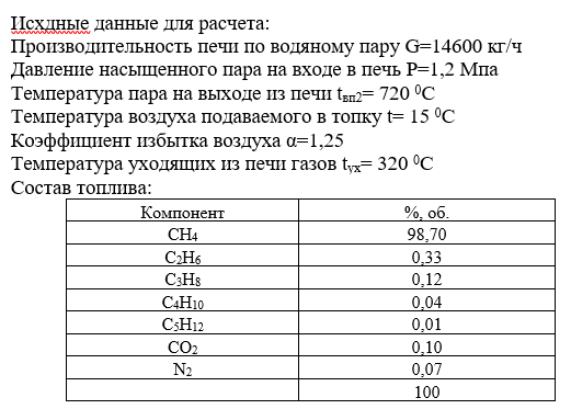 Для студентов СамГТУ по предмету Техническая термодинамикаРасчет печи производства перегретого водяного параРасчет печи производства перегретого водяного пара