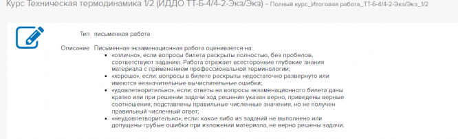 Услуга: Курс Техническая термодинамика 1/2 (ИДДО ТТ-Б-4/4-2-Экз/Экз) - Полный курс_Итоговая работа_ТТ-Б-4/4-2-Экз/Экз_1/2 - помогу вам сдать!