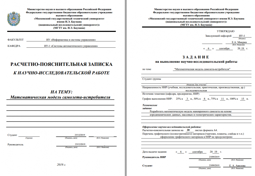 Для студентов МГТУ им. Н.Э.Баумана по предмету Технические наукиНИР на тему "Математическая модель самолета-истребителя"НИР на тему "Математическая модель самолета-истребителя"