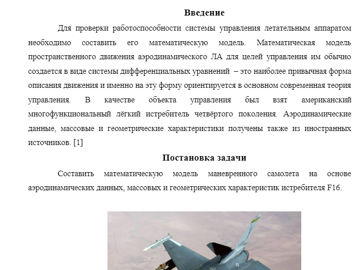Другое: НИР на тему "Математическая модель самолета-истребителя"