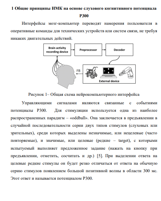 Для студентов МГТУ им. Н.Э.Баумана по предмету Технические наукиОброз применения современных ИМК на основе слуховых когнитивных вызванных потенциалов Р300Оброз применения современных ИМК на основе слуховых когнитивных вызванных потенциалов Р300