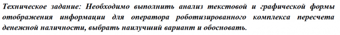 Анализ и сравнение текстовой и графической формы отображения информации для оператора роботизированного комплекса пересчета денежной наличности