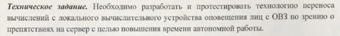 Разработка технологии переноса вычислений на сервер с целью повышения времени автономной работы устройства оповещения лиц с ОВЗ по зрению о препятствиях