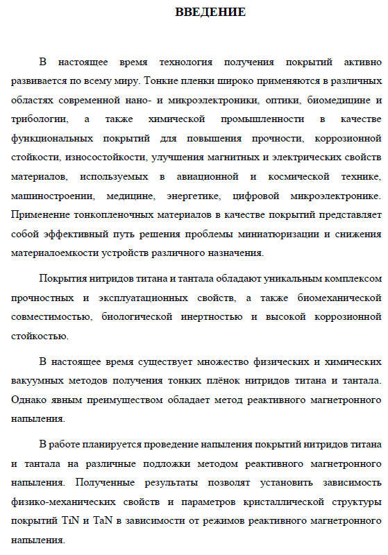 Главная » Учебные материалы » Технические науки » Научно-исследовательские работы (НИР) » МГТУ им. Н.Э.Баумана » 9 семестр (1 семестр магистратуры) » Исследование покрытий нитрида титана и тантала, полученных методом магнетронного напыления