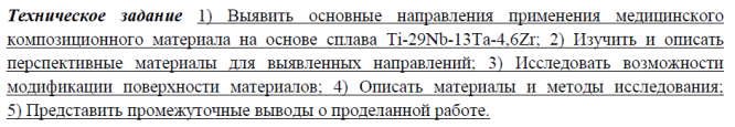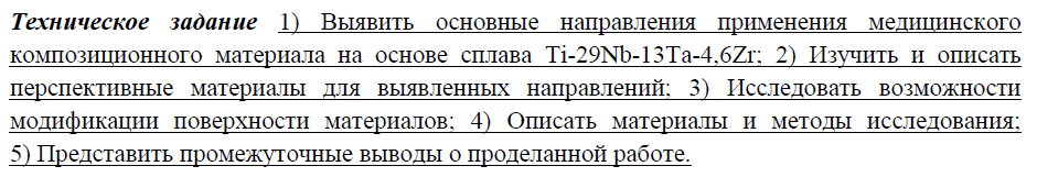 НИР: Разработка биосовместимого медицинского композиционного материала на основе сплава Ti-29Nb-13Ta-4,6Zr