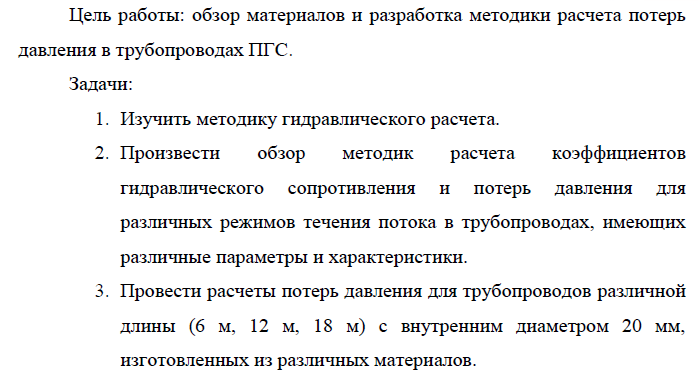НИР: Обзор материалов и разработка методики расчета потерь давления в трубопроводах ПГС