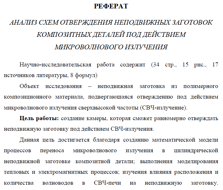 НИР: Анализ схем отверждения неподвижных заготовок композитных деталей под действием микроволнового излучения