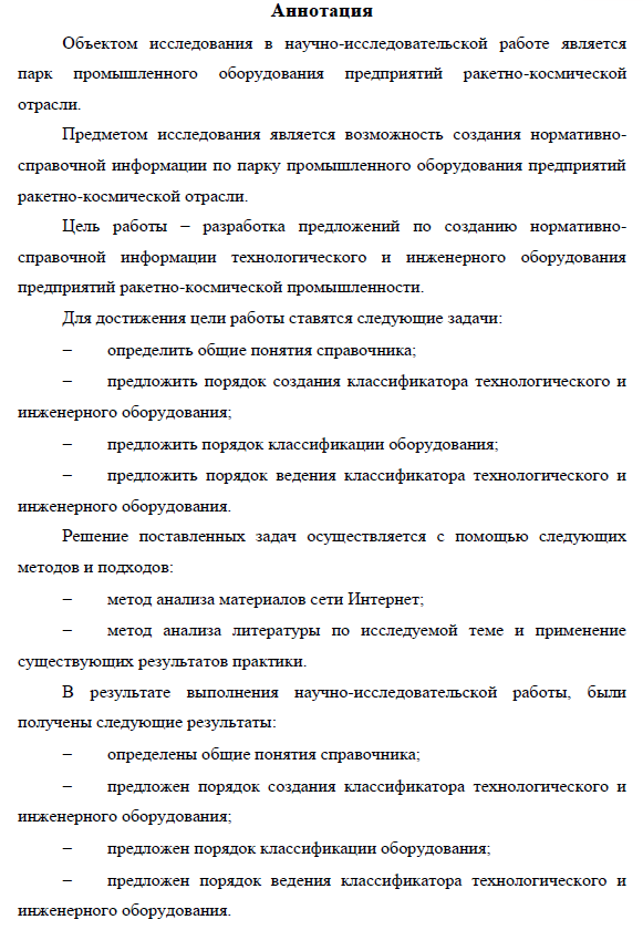 Исследование научных подходов и разработка предложений по созданию нормативно-справочной системы технологического оборудования предприятий ракетно-космической промышленности