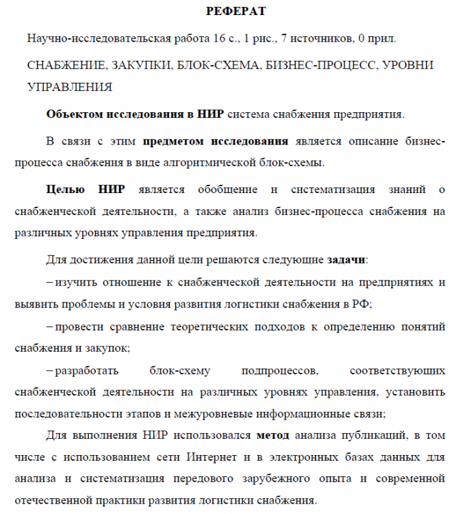 НИР: Разработка блок-схемы бизнес-процесса снабжения промышленного предприятия