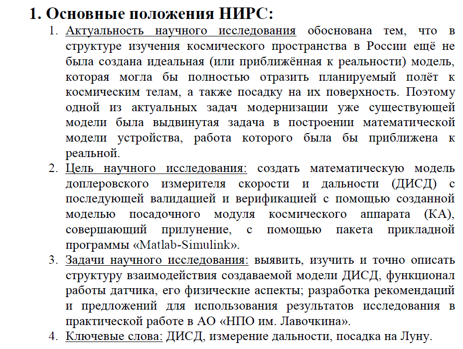 НИР: Математическая модель доплеровского измерителя скорости и дальности на примере посадки космического аппарата на Луну