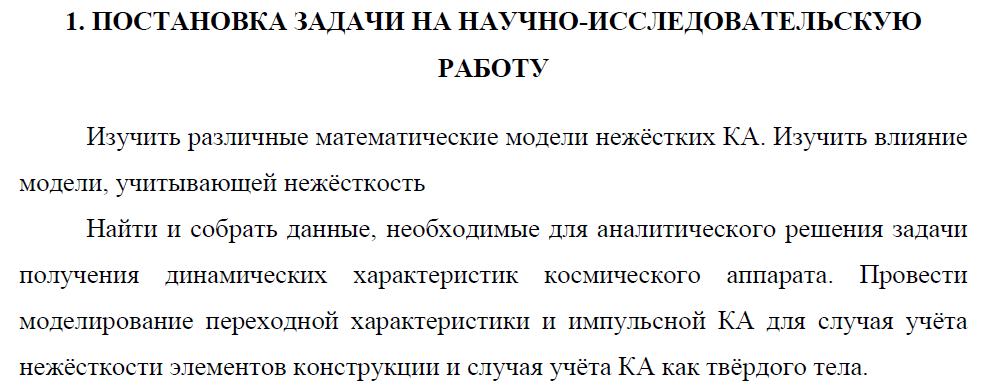 НИР: Исследование влияния нежесткости элементов конструкции на динамические характеристики космического аппарата