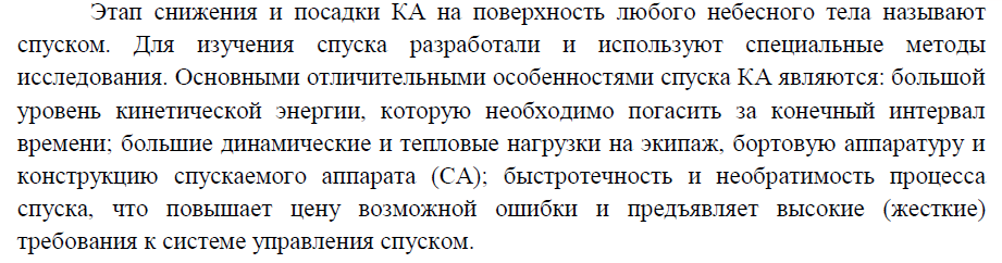 Главная » Учебные материалы » Технические науки » Научно-исследовательские работы (НИР) » МГТУ им. Н.Э.Баумана » 10 семестр (2 семестр магистратуры) » Исследование этапов посадки спускаемого космического аппарата на поверхность планеты
