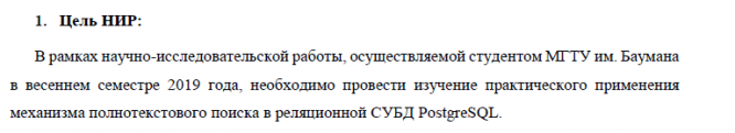 Главная » Учебные материалы » Технические науки » Научно-исследовательские работы (НИР) » МГТУ им. Н.Э.Баумана » 10 семестр (2 семестр магистратуры) » Изучение практического применения механизма полнотекстового поиска в реляционной СУБД PostgreSQL