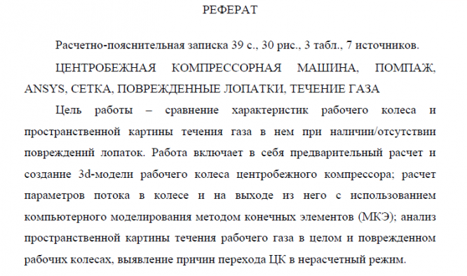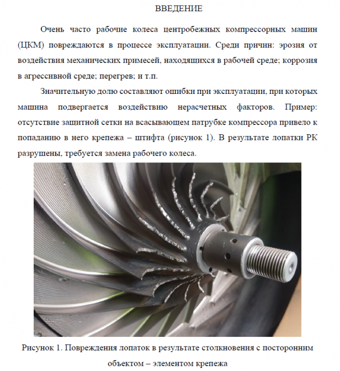 НИР: Анализ работы рабочего колеса центробежного компрессора на нерасчетном режиме в результате повреждений