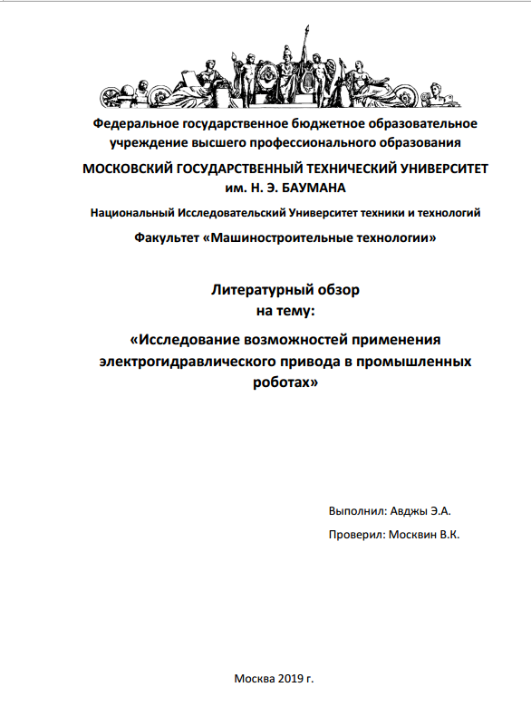Для студентов МГТУ им. Н.Э.Баумана по предмету Технические наукиИсследование возможностей применения электрогидравлического привода в промышленных роботахИсследование возможностей применения электрогидравлического привода в промышленных роботах