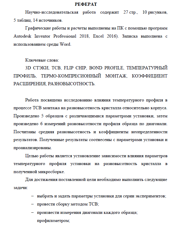 Главная » Учебные материалы » Технические науки » Научно-исследовательские работы (НИР) » МГТУ им. Н.Э.Баумана » 10 семестр (2 семестр магистратуры) » Исследование влияния параметров температурного профиля "флип-чип" монтажа 3D микросхем на разновысотность кристалла