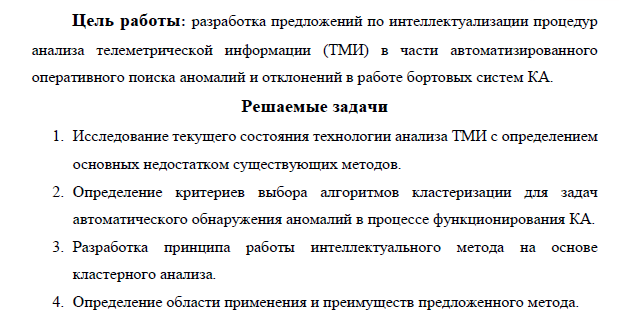 НИР: Интеллектуализация анализа телеметрической информации КА на основе алгоритмов кластерного анализа