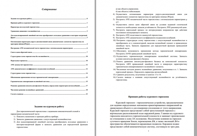 НИРС по курсу "Высокоточные системы навигации" на тему "Оптимизация динамических характеристик и исследование устойчивости автоколебаний гиросистемы с сопутствующей нелинейностью"
