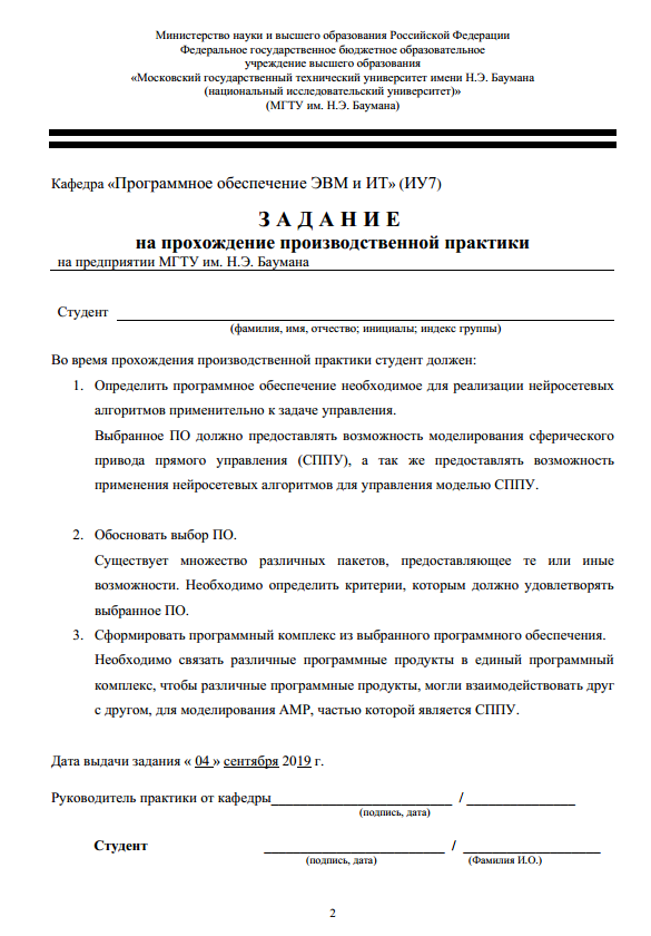 НИР: Задание на прохождение производственной практики на предприятии МГТУ им. Н.Э. Баумана
