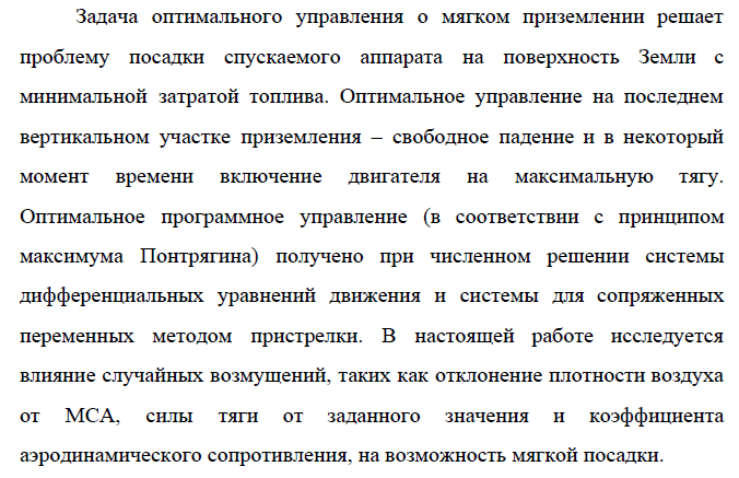 НИР: Влияние случайных возмущений на возможность мягкой посадки