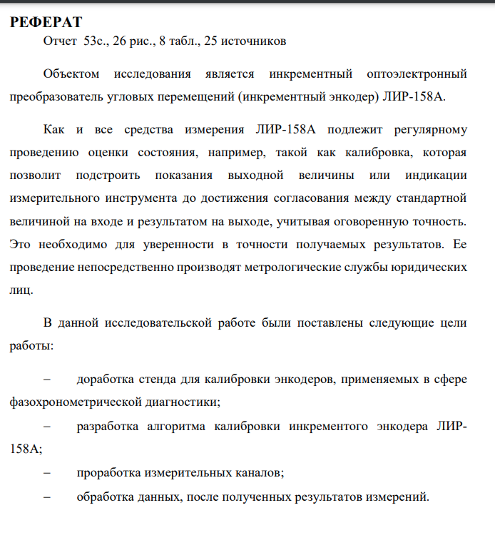 В настоящее время одним из приоритетных направлений развития для машиностроения является повышение эффективности производства. Любой производитель стремится повысить эффективность своего производства, воздействуя на процесс различными способами. Так неотъемлемой частью систем автоматизации производственных процессов являются угловые преобразователи (энкодеры) [1]. Они являются надежными и неприхотливыми и позволяют преобразовать угол вращения вала (или другого объекта) в электрический сигнал, который позволяет определить угол поворота вала. Данное средство измерения используется в области технологического обеспечения производства и не предназначено для применения в области здравоохранения, охраны окружающей среды, обеспечения безопасности труда, экономической, налоговой и иной торгово-финансовой деятельности, оценки соответствия и т.д. Таким образом, опираясь на гл.1 ст.1 ФЗ №102, в которой прописано на какие сферы государственного регулирования обеспечения единства измерений распределяются измерения, следует сделать вывод, что для угловых энкодеров поверка является не обязательной и можно производить калибровку [2]
